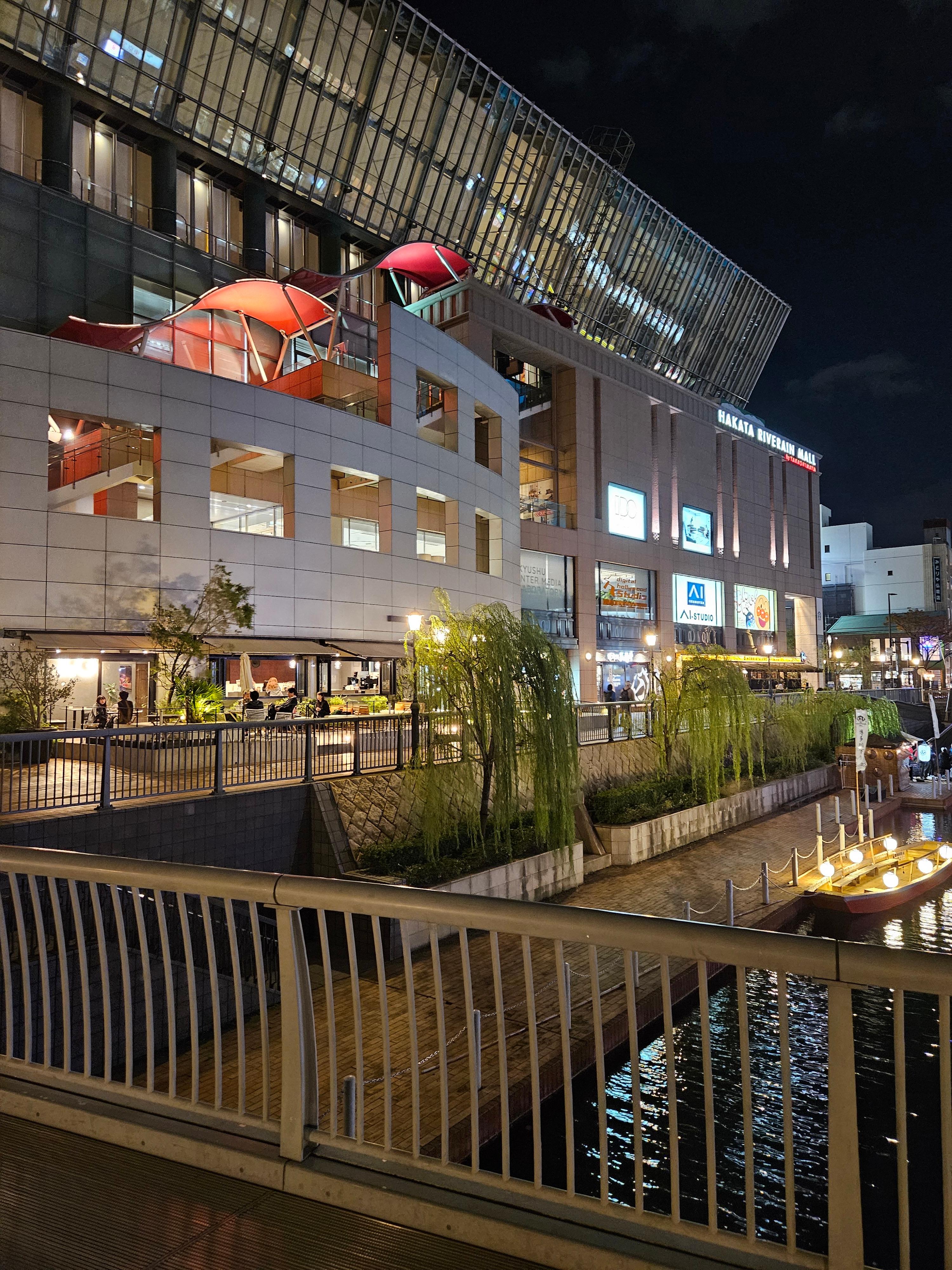 첫 숙소는 나카스강 옆에 있는 더 로얄파크 캔버스 후쿠오카 나카스이다. 이미 부모님과 결혼전에 후쿠오카에 다녀온 적이 있지만 당시에는 하카타 역 근처에만 있었어서 이번에는 나카스강 옆에, 유후인에서 복귀한 뒤에는 텐진쪽에 숙소를 잡았다. 비교적 신축 호텔로 시설도 좋고 검은 색으로 인테리어한 대중탕의 느낌이 매우 세련된 편이었다.