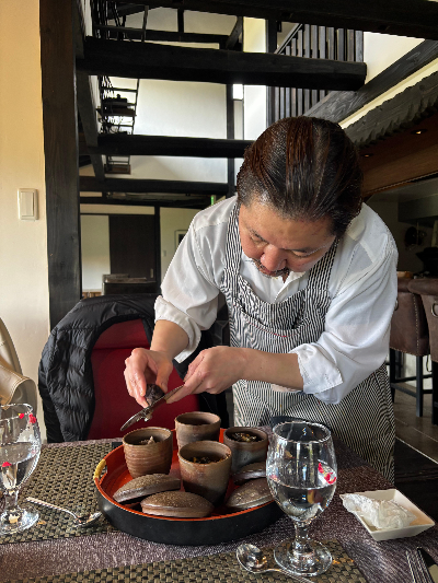 유후인에 도착하여 미리 예약한 레스토랑으로 향한다. 식당의 이름은 코지코지. 일본식의 이탈리안 음식을 선보이는 곳으로 유후인에서 나온 채소류들을 사용한다고 한다. 점심기준 1인에 7만원? 안쪽이었던 것으로 기억한다. 여행을 준비하면서 이식당에 꼭 가고 싶어 인스타 DM으로 몇달전에 예약을 해놨다. 셰프가 매우 친절하고 코스요리기 때문에 설명도 해주신다.