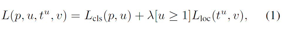 Fast RCNN 모델은 softmax 분류기와 bbox regressor를 아래 수식으로 한번에 학습해 최적화한다.