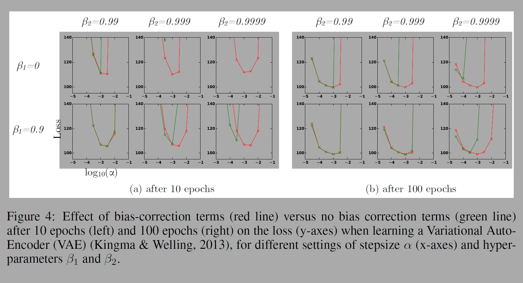 아래 실험은 bias를 교정한 것과 교정하지 않은 것을 비교한 실험이다. 하이퍼파라미터, stepsize를 변경하며 실험했다.